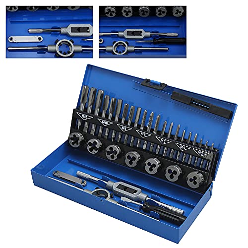 32 pezzi filettatura metrica di alta qualità, con scatola in acciaio, filettatura grossa, filettatura metrica combinata, set di utensili per filiere metriche M3 M4 M5 M6 M8 M10 M12