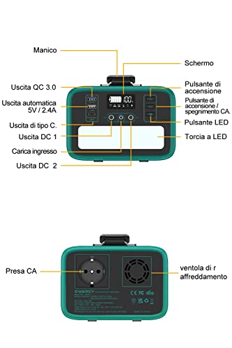 SWAREY Generatore Solare Portatile 240Wh con Pannello Solare Monocristallino 100W 18V AC/DC/USB/QC3.0/Tipo-C Generatore di Corrente per Campeggio RV Outdoor Camper Case Giardino Barche