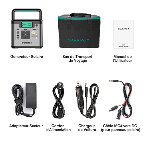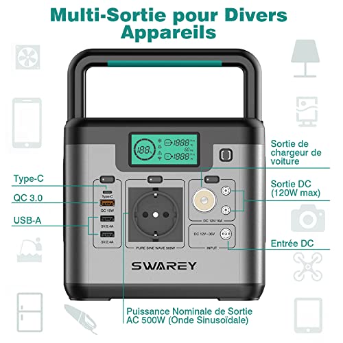 SWAREY Generatore Solare Portatile 518Wh AC/DC/USB Onda Sinusoidale Pura Generatori Domestici ed All'aperto per Campeggio RV Emergency Backup 500W (1000W picco) Centrale Elettrica Portatile