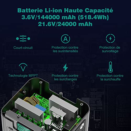 [Piccole Dimensioni & Grande Capacità] La dimensione del nostro SWAREY S500 generatore portatile solare è di soli 19*16*17 cm, il che è molto comodo da usare. Il generatore solare ha una Capacità di 518Wh (3.6V/144Ah, 21.6V/24Ah). Fino a 500 W di potenza (1000 W di picco) per il campeggio o il backup di emergenza.