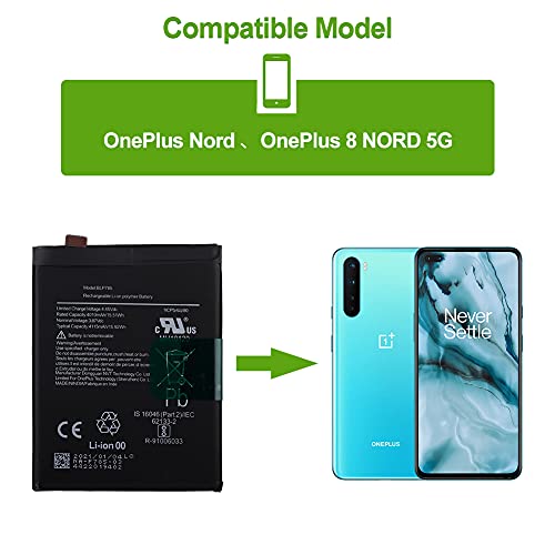✔ 【Modello compatibile】 Compatibile con OnePlus Nord /OnePlus 8 NORD 5G, OnePlus Z AC2001, AC2003. Modello NO. BLP785. Assicurati che il tuo telefono sia adatto a questa batteria di ricambio prima di ordinarlo.