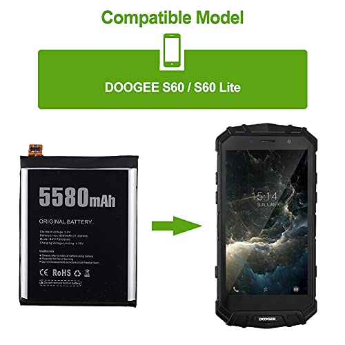 ✔ 【Modello compatibile】 Compatibile con DOOGEE S60/S60 Lite. Modello n.:BAT17S605580. Assicurarsi che il telefono sia adatto per questa batteria di ricambio prima di ordinare.