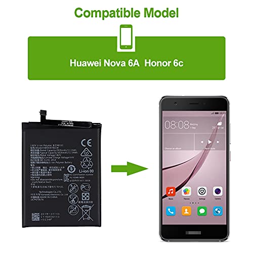 ✔ 【Modello Compatibile】 Compatibile con Huawei Nova CAN-L01L11, CAN-L02L12, CAN-L03L13, CAN-L11, 0/ Nova 6A, Huawei Enjoy 6s/Honor 6c DIG-L01, Y6 2017. Modello NO.HB405979ECW. Assicurarsi che il telefono sia adatto per questa batteria di ricambio prima di ordinare.