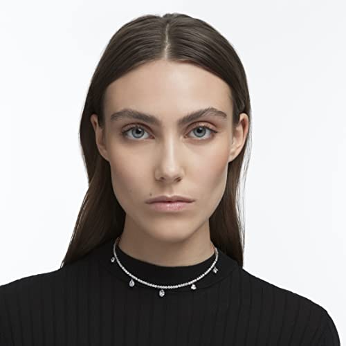 Swarovski Girocollo Tennis Deluxe, Cristalli a taglio misto, Bianco, Placcato rodio
