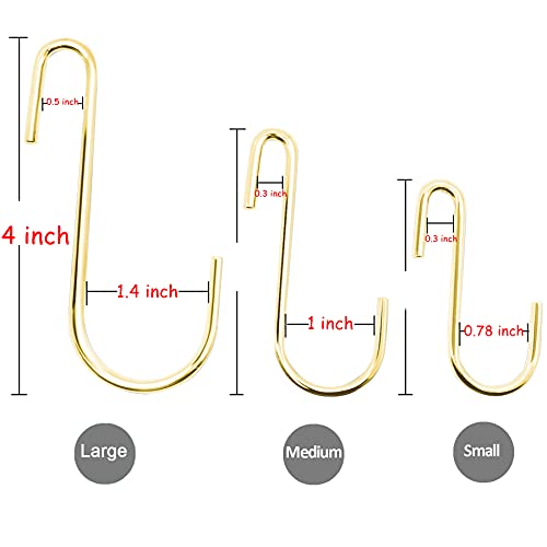 Swatowot Confezione da 15 ganci resistenti a S in 3 misure, a forma di S, per cucina, bagno, camera da letto e ufficio (confezione da 15, piccola+media+XL, oro)
