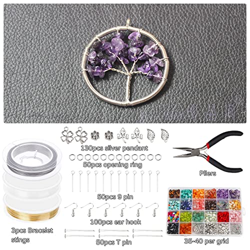 ✨ 【Materiali di alta qualità】 Buona gamma di gemme di chip 20 diverse perle di pietra come turchese, lapislazzuli, avventurina verde, pietra di corallo, turchese bianco, cristallo rosa, pietra di agata, ecc. Ogni perlina di pietra è unica e irregolare, e ce ne sono molte altri accessori fai da te.