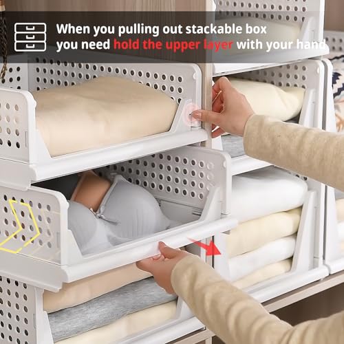 SWAWIS 8 Pezzi Contenitori Impilabili per Armadi in Plastica Staccabili, 43 * 32.5 * 18cm Impilabili per Armadio Organizzatori, Scatole Pieghevoli per Guardaroba per Casa Camera da Letto Cucina