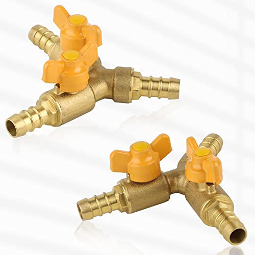 SWAWIS Raccordo a 3 Vie Splitter Connettore Adattatore Valvola di Arresto del Tubo Valvola a Sfera in Ottone con 3 Morsetti per Aria Acqua Gas (per ID tubo 10 mm-11 mm)