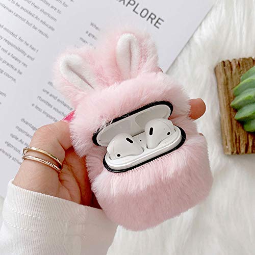 Swdan Custodia Auricolari Custodia Protettiva Auricolari Compatible con Airpods 1&2, Completa Protettiva Custodia in Gomma Morbida Antiurto Divertente,Peluche carino (Pink rabbit)