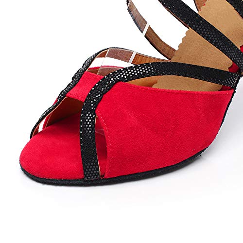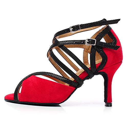 SWDZM Scarpe da Ballo Latino Salsa Donna Scarpe da Ballo da Sala Tango Valzer Moderno Salsa Sandali da Festa,Tacco-7cm,Model-6131, Rosso, 6.5UK/42EU