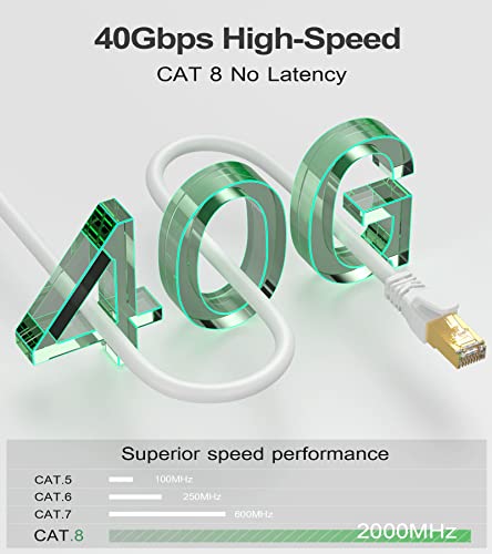 SWECENT Cavo Ethernet CAT8 5M, 26AWG Lastest 40Gbps 2000Mhz SFTP Patch Cord, Heavy Duty ad alta velocità Cat8 Lan Network RJ45 Cavo a parete, ideale per reti Gigabit/LAN, router/modem, switch, bianco