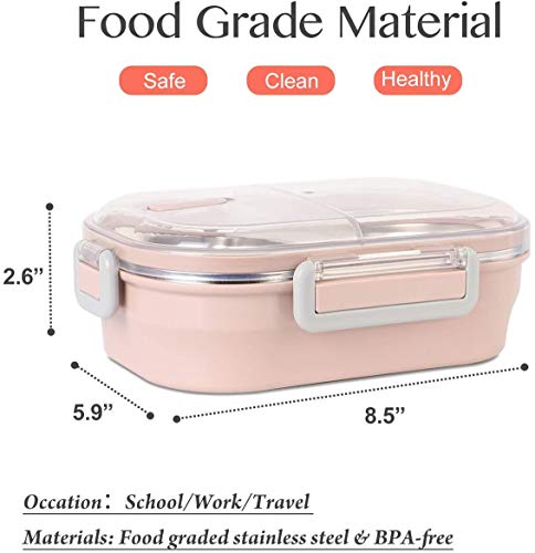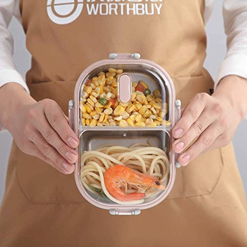 Sweelive Lunch Box, Porta Pranzo, 700ml Kids Bento Box Portapranzo Acciaio Inox con 2 Scomparto Sigillato, Contenitore per Bambini o Adulti (Rosa)