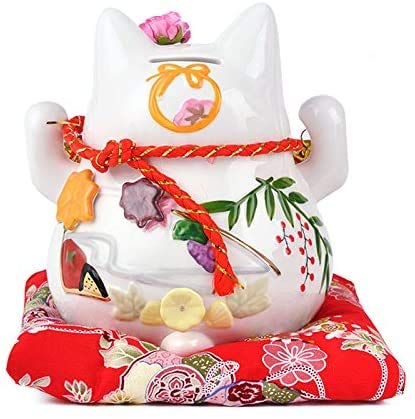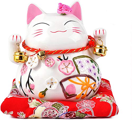 Sweelive Maneki Neko - Gatto Bianco Giapponese Feng Shui Fortunato con Due Campana - Porcellana fine, Come Un salvadanaio e Portafortuna (Piccolo (12 cm)