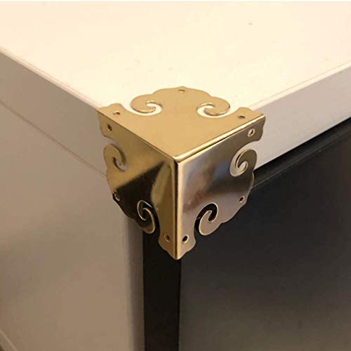 Sweelive Set di 4 protezioni angolari vintage in ottone puro, con bordo in legno, per gioielli, scatola regalo, tre lati