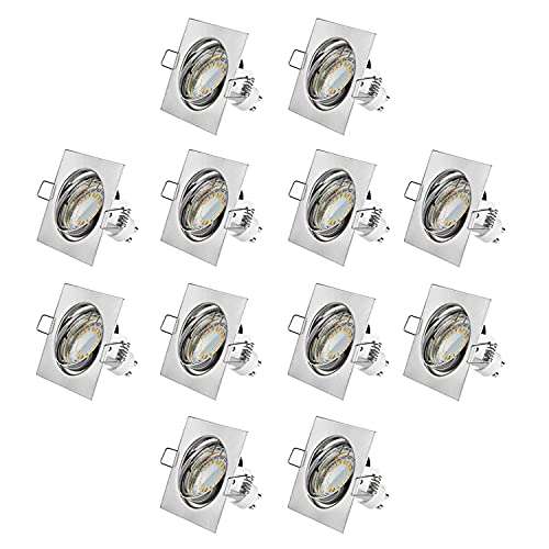 Sweet LED, faretti a incasso, GU10, 5 W, 400 lumen, luce bianco caldo, 230 W, con cornice di montaggio, 12 pezzi moderno Eckig gebürstet - Kaltweiß