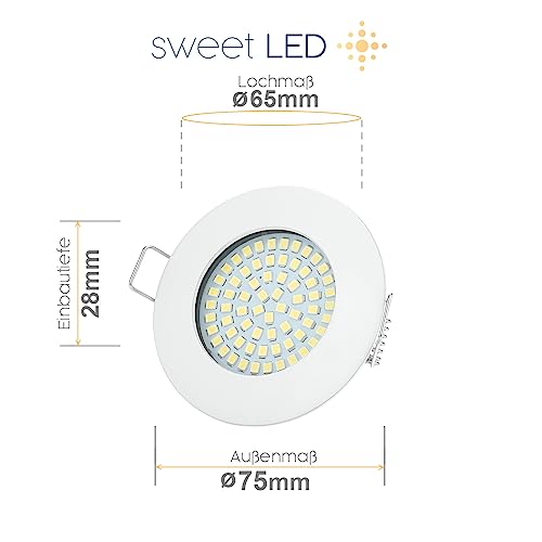 Sweet Led 6 Fari da Incasso Piatto 3,5W SW 68 N, ad incasso | 330 Lumen | 230 V 6500K Rund, Weiss, Kaltweiss