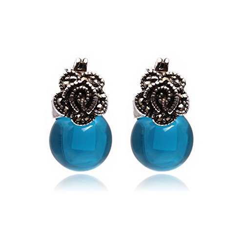 Sweet & Happy ragazza Store 12 mm Round similperle tibetano argento marcasite base Oltremare bullone-Band-fiori-orecchini gioielli