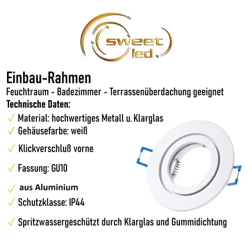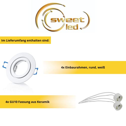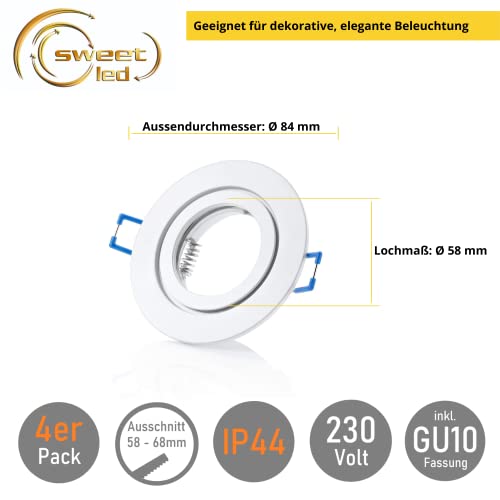 Sweet-led,4x bianco confezione risparmio IP44 in alluminio, telaio da incasso, per ambienti umidi, bagno, lampada da incasso, attacco GU10 230 V, protezione dagli spruzzi d'acqua, 4 pezzi,