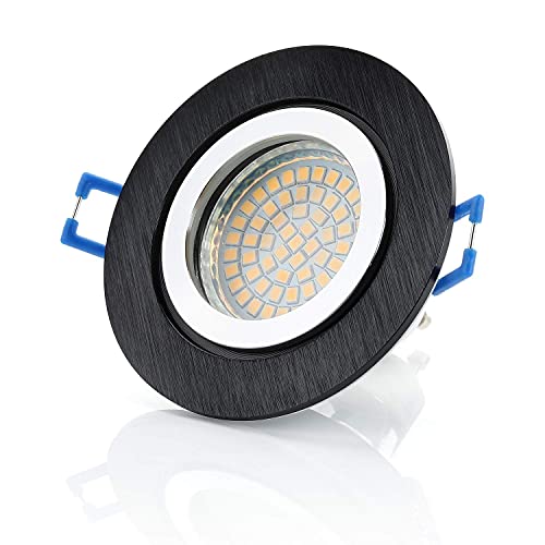 Sweet-led, confezione risparmio nero, IP44 in alluminio, ambienti umidi bagno, bagno, in alluminio, con LED GU10, chiusura a scatto, protezione dagli spruzzi d'acqua, faretto da incasso 6er 6000K