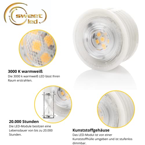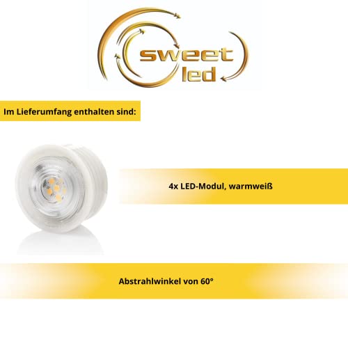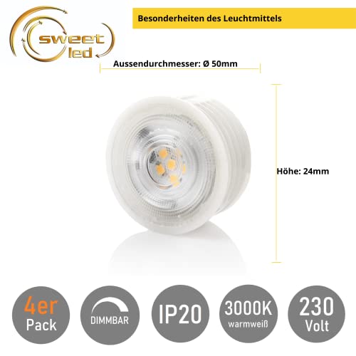 Sweet Led Modulo da 4 pezzi, dimmerabile, 230 V, 5 W, 330 lumen, 3000 K, piatto ø50 x 24 mm, irradiazione 60°, per faretto da incasso, sostituisce lampadine GU10 (bianco caldo 4 pezzi)