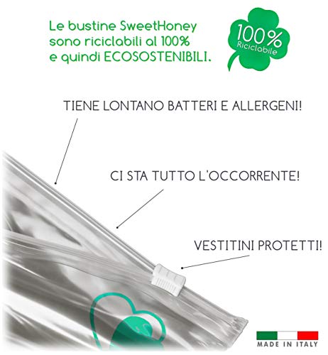 SweetHoney 6 Bustine, Sacchetti, Buste Trasparenti, Corredino Neonato, Chiusura Ermetica Con Cursore, Per Nascita, Idee Regalo (Verde Mare)