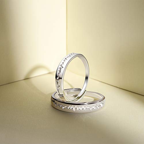 Coppia di anelli per gli innamorati in argento Sterling 925, con battito cardiaco in platino.