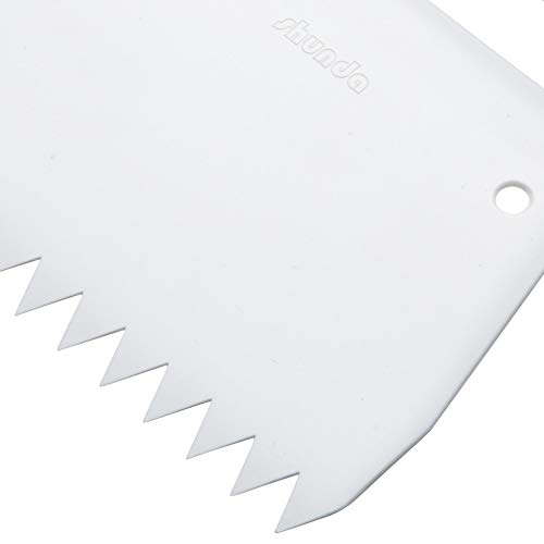 IL SET COMPRENDE: 1 raschietto per torta con bordo seghettato (13,5 cm x 9,5 cm), 1 strumento per lisciare la glassa a bordo liscio (19 cm x 12,5 cm)