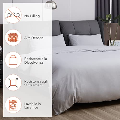 Sweetnight Set Copripiumino Matrimoniale, Copripiumino Matrimoniale 240x220 CM con Federe Cuscino Letto, Copripiumini in 100% Microfibra, Morbido e Traspirante, Grigio Leggero