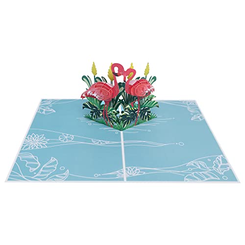 Sweetpopup Biglietto di auguri pop up, cartolina compleanno, carte fatto a mano, alta qualità - Coppia di fenicotteri 3D 046