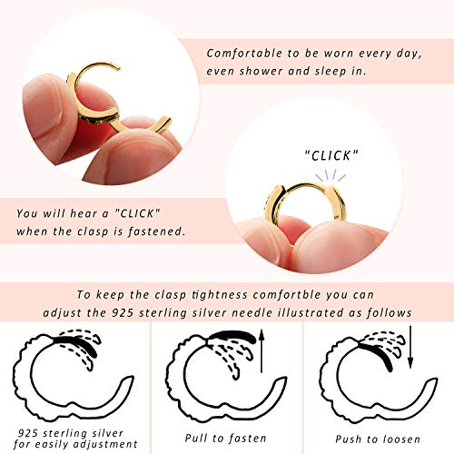 SWEETV 925 boucles d'oreilles arc-en-ciel in argento sterling per riempire femmes, boucles d'oreilles Huggies in zircone cubico placcato o 14 carati, boucles d'oreilles in cartilagine ipoallergénique