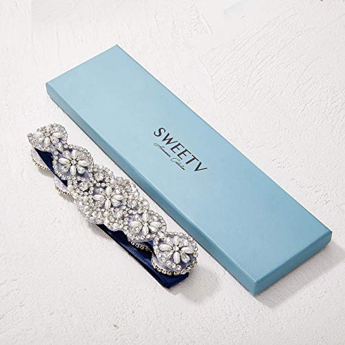SWEETV Squisito Fascia Cristallo Rhinestones Cintura Abito da Sposa Accessori Cintura Selvaggio Strass Matrimonio 220cm*2cm, Blu