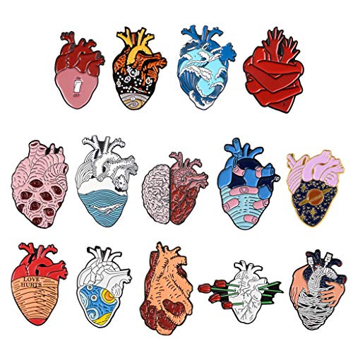 SweetWU - Set di 14 spille anatomiche a forma di cuore, smaltate e a forma di cuore, unisex, Vedi dettagli