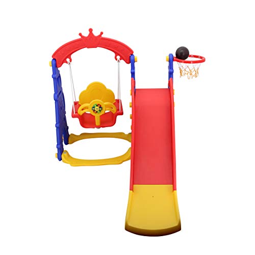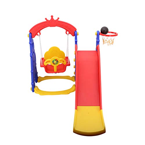 Sweety Toys 12718 - Altalena e scivolo, set da gioco 3 in 1, prodotto rosso/giallo/blu, con canestro da basket, design Torre Eiffel