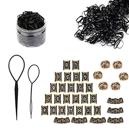 Il pacchetto include: il set di perline runiche vichinghe contiene 24 pezzi di perle runiche vichinghe, 6 pezzi di perline rotonde dorate, 6 pezzi di perline scavate, viene fornito con 2 pezzi di strumenti per capelli, circa 500 pezzi di piccoli elastici e 1 borsa.