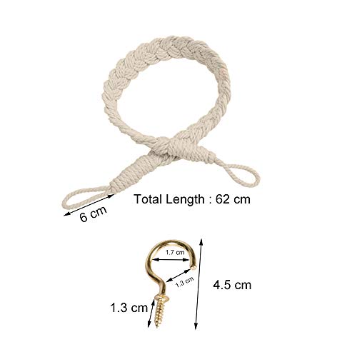 Sweieoni 4 Pezzi Tieback Tenda Corde Cordini per Tenda Fermatende Raccoglitenda Tende Fermatende Fatti a Mano con 4 Ganci a Vite in Metallo per Camera da Letto, Casa - Beige