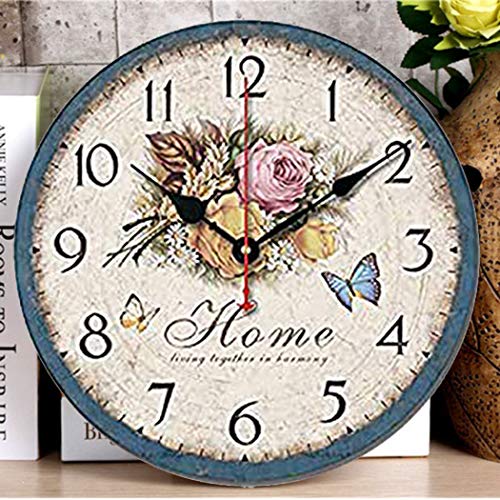 SWHONG Orologio da parete shabby chic con motivo floreale, retrò, in legno, silenzioso, decorazione per soggiorno, camera da letto, casa, 30,5 cm