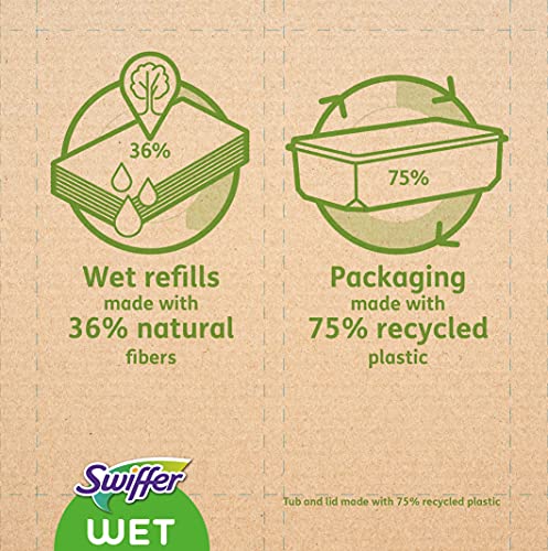 Swiffer Lavapavimenti Wet, 72 Panni Umidi, Limone, Pulizia Igienica Profonda, Rimuove Sporco e Batteri, per Tutti i Tipi di Pavimenti, Maxi Formato, Panni con 36% di Fibre Naturali