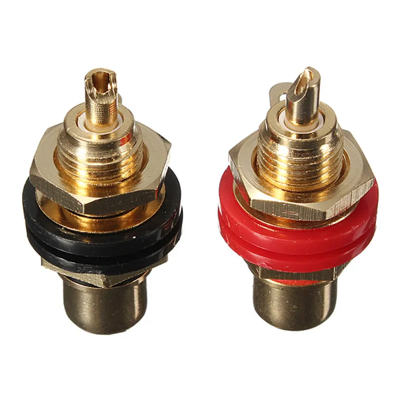 SWILET 2Pcs Gold Plated RCA Panel Mount Adapter Chassis Socket Phono Female Connector Plug Set Audio Terminal Plug Black And Red