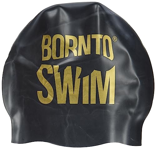 BOR NTO Swim Cuffia da Nuoto in Silicone per Bambini, Uomo, Donna Ragazzi e Adulti Cuffia da Nuoto con Hai Motive, Unisex, Schwimmkappe aus Silikon für Kinder, Damen, Herren, Schwarz/Golden, M