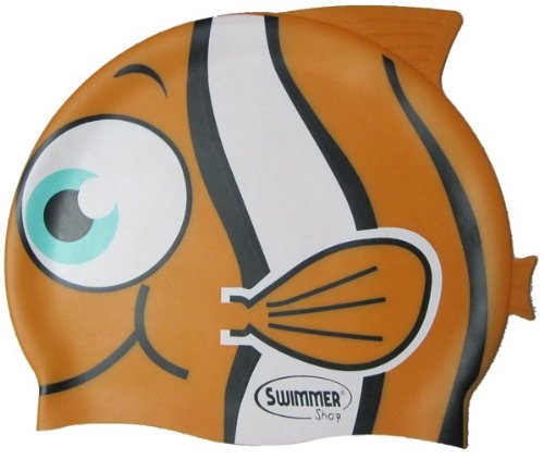 SwimmerWear Cuffia da Piscina in Silicone a Forma di Pesce Tropicale Taglia Unica per Il Nuoto (Arancione)