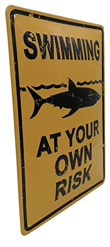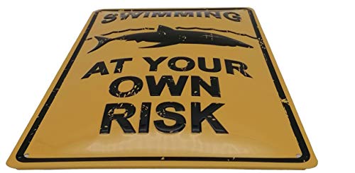 Cartello in metallo con scritta "SWIMMING at your own Risk".