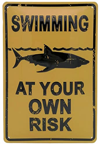 Swimming at Your own Risk - Targa in metallo goffrato, 30 x 20 cm