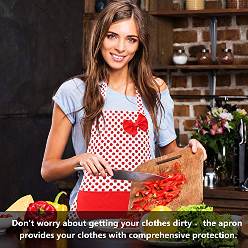 ❀ Grembiule carino a pois: il grembiule rosso brillante ha dei pois, c'è un grazioso fiocco rosso sulla parte del petto. Il bordo adotta pieghe come una gonna da principessa, che è giocosa e adatta alle ragazze adolescenti.