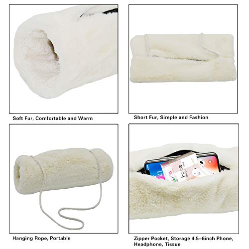 SwirlColor Manicotto Scaldamani, Scaldamani della Tasca della Cinghia Muffa della Mano in Pelliccia Sintetica Bianca per Le Donne 1 pz, con Gancio Trasparente 1 pz