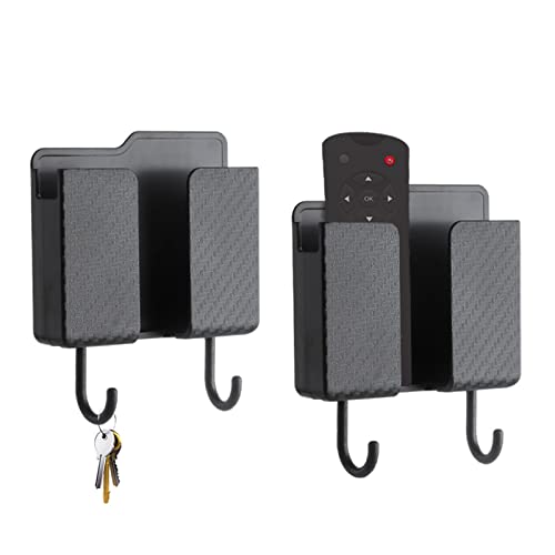 SwirlColor Scatola Portaoggetti da Parete Multiuso 2 pezzi, Autoadesivo Porta Telecomando da Muro, Supporto per Telefono da Parete nero con Gancio per Home Office