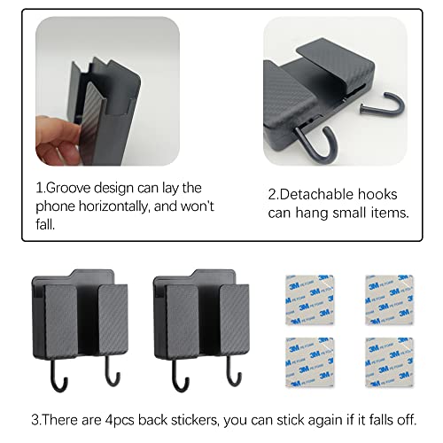 ▶ Design unico: il design cavo del supporto per telefono da parete può essere riposto e caricato, risparmiando spazio. Ci sono due piccoli ganci rimovibili nella parte inferiore, che ti aiutano a risolvere il problema quotidiano di riporre piccoli oggetti, come chiavi, cavi dati e cuffie per mantenere in ordine la scrivania.