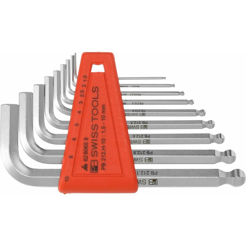 lunghezza fianchi ottimale. Con testa sferoidale per lavorare con angolazioni fino a 30°. Lega speciale PB Swiss Tools, particolarmente tenace e dall'elevata durezza. Superficie nichelata e cromata. Fornitura: Cad. 1 chiave maschio piegata n. art. 626063: Dim. 1,5;