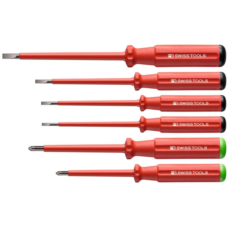Impugnatura sottile con rivestimento ipoallergenico in elastomero e nocciolo in polipropilene resistente agli urti. Impugnatura e lama completamente isolate fino a 1.000 V a norma DIN EN 60900 / VDE 0682-201. Fornitura: Cad. 1 giravite per viti con intaglio n. art. 663000 Dim. 2,5;