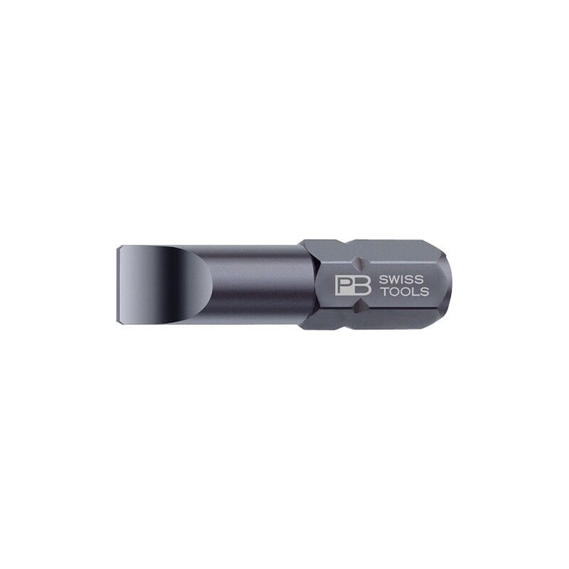 Per l'alloggiamento in impugnature portainserti o avvitatori elettrici con attacco esagonale oppure per l'alloggiamento in raccordi n. art. 675000 − 675050. Straordinaria elasticità e tenacia, di elevata durezza per durate elevate. Estremità altamente precisa per una presa perfetta sulla vite e “Anti-Cam-Out”. Il rivestimento Nano è al contempo codificazione cromatica e protezione antiruggine. Uso: Per viti con intaglio a norma DIN 3127 oppure DIN ISO 2351-1. Norma: DIN ISO 1173. Materiale: Acciaio speciale ad alta resistenza, particolarmente tenace e di elevata durezza. Dati tecnici Tipo di prodotto Utensile bit Lunghezza complessiva, mm 25 Codolo esagonale per bit C 6,3 Larghezza dei taglienti, mm 5,5 Spessore della punta, mm 0,8 Denominazione originale prodotto Bit Precision
