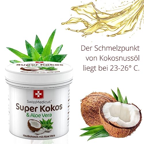 SwissMedicu Super COCCO con aloe vera per la pelle, Olio di cocco con aloe vera, cura idratante per viso, corpo, capelli, pelle, labbra dalle Filippine, profumo naturale di noce di cocco, 150 ml